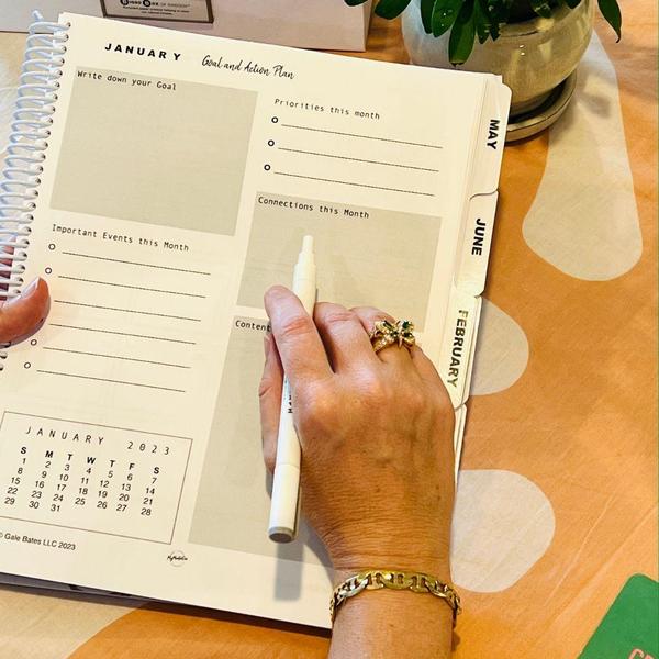 planner that will help you take control of your business schedule to get things DONE. It will help you organize your day, your week, your month, your year. You’ll write down every appointment and task so you don’t miss anything because it’s all written in your planner and you’ll learn how to sync it to your phone.