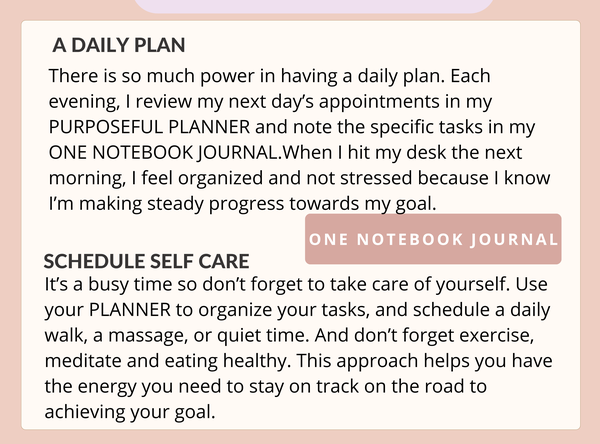 Here are my suggestions to stay on track wand be prepared to achieve your goals.