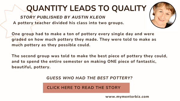 This was emphasized this week when I listened to Amy Porterfield’s podcast and I learned about the story of QUANTITY LEADS TO QUALITY!