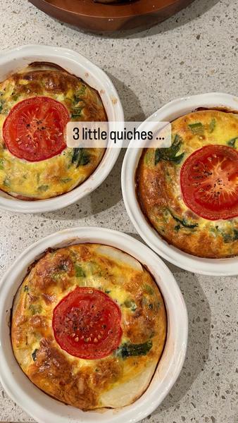 What I’m Baking: I found these little pie plates on Amazon and so now I make myself 3 little quiches instead of one big one and freeze them. My quiches are made with a potato crust. I simply slice up a potato thinly and place it in the bottom of the pie pan instead of a crust.