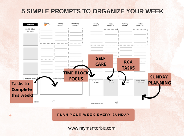 Whenever life feels overwhelming, I return to these five prompts. They keep me organized and ensure I'm making progress toward my bigger goals—personally and professionally.